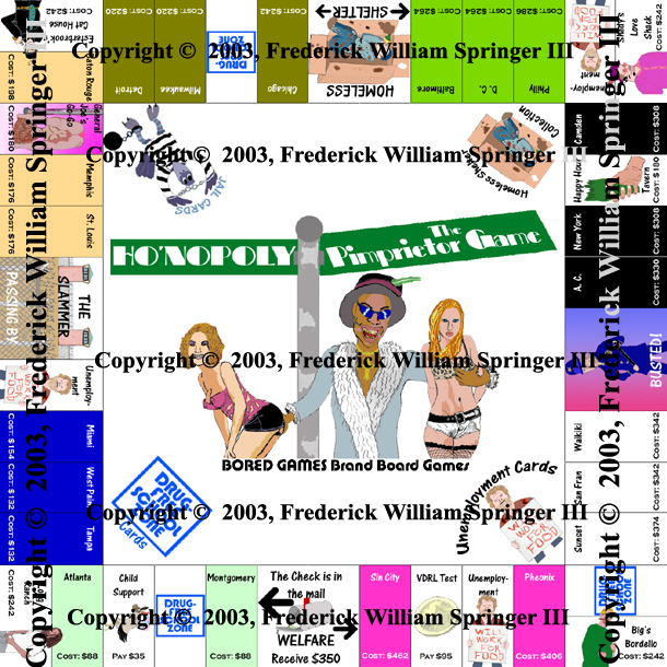Child Support & Game Cards The Slammer Designed board and all illustrations for Bored Games brand Board Games' Ho'nopoly: The Pimprietor Game. 2003. RETURN TO GRAPHICS MAIN PAGE.