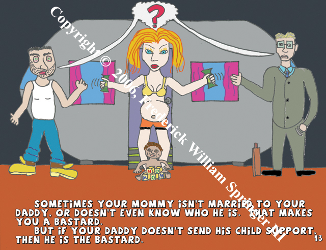 I provided illustrations (hand drawn, Scanned, & Colored in Photoshop) for mock children's book Words Are Just Words, which teaches kids the correct use of taboo words. 2006. RETURN TO GRAPHICS MAIN PAGE.